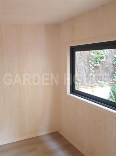 Las estructuras Self House las fabricamos con pared exterior de madera tratada para las inclemencias del tiempo, con un lasur al agua en el color que mas le guste, tenemos una gran variedad de colores para elegir. La cubierta totalmente aislada, a un agua le da un aire más moderno y minimalista. Las paredes interiores son de madera, los colores claros son los que más gustan para dar mas luminosidad y amplitud al interior. El suelo de parquet laminado con variedad en los tonos a elegir. Las puertas y ventanas en PVC con cristal doble, para tenerlo todo aislado, también varios colorea a elegir.