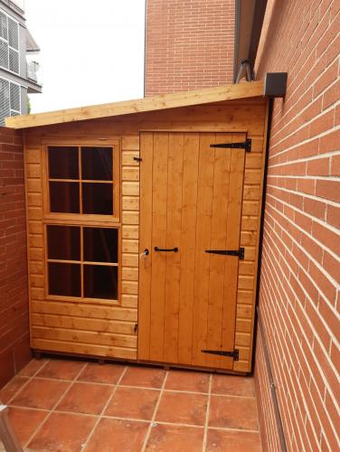Cobertizos, Llega el buen tiempo y tenemos que preparar nuestro jardín para disfrutar del buen tiempo y tenerlo todo ordenado en el exterior. Si necesita un cobertizo para herramientas, juguetes, depuradora, etc., somos fabricantes de cobertizos, personalizamos según las necesidades de cada cliente, nos adaptamos al espacio. Puede elegir el tipo de cubierta, a un agua o a dos, las puertas dobles o sencillas, ventanas fijas o practicables, las medidas de ancho, fondo y altura, nosotros lo fabricamos y lo montamos. Pídanos presupuesto sin compromiso.