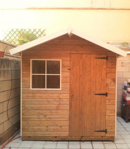 El cobertizo Warwick Conversión de madera tratada en color almendra con cubierta a dos aguas. El grosor puede ser de 15 o 20 mm. La altura en la parte alta es de 2250 o 2300 mm dependiendo del tamaño. Madera tratada en color estándar almendra o el color que elija de nuestra extensa gama de colores.