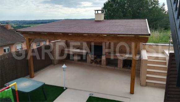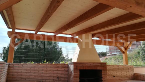 La cubierta de madera perfectamente incorporada a la chimenea de la barbacoa.