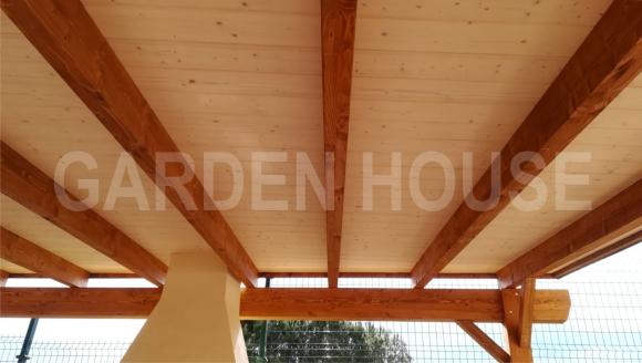 El color puede ser el que se quiera, escogiendo de nuestra amplia gama de colores para el tratamiento de la madera de exterior, en este caso se combino el color crema en el machihembrado y castaño para la estructura.