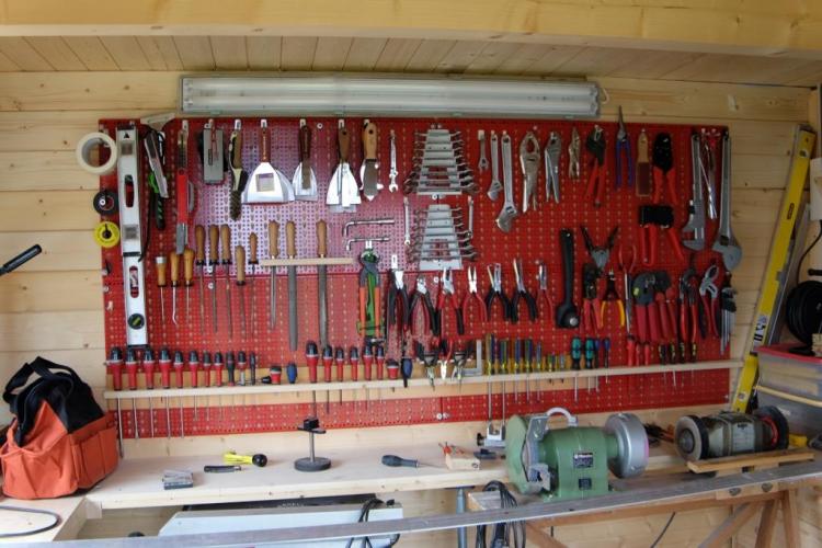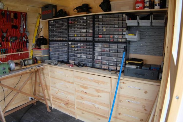 Este consejo, es un ejemplo real de uno de nuestros clientes que decidió comprar una cabaña y convertirla en un taller donde almacenar herramientas, incorporando una mesa de trabajo. Todo parece tener su sitio y su espacio correspondiente para que puedas encontrar tus herramientas con rapidez y disfrutar de tu tiempo en tu taller.