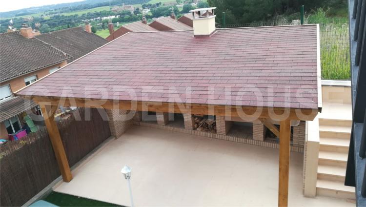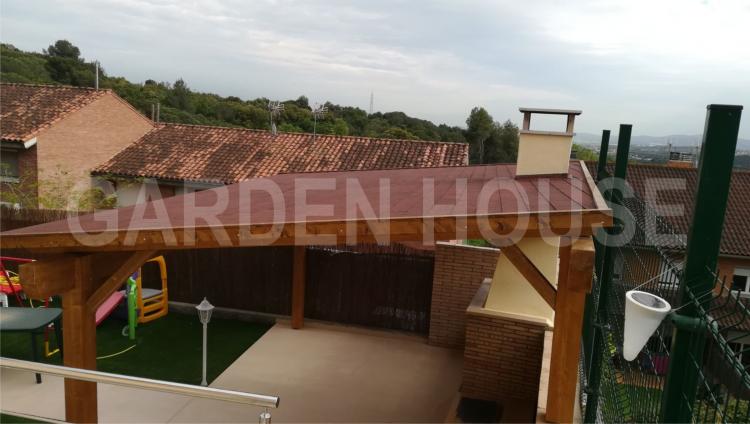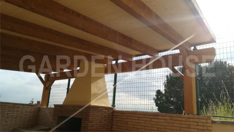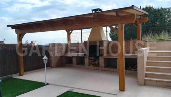 La cubierta de madera perfectamente incorporada a la chimenea de la barbacoa.